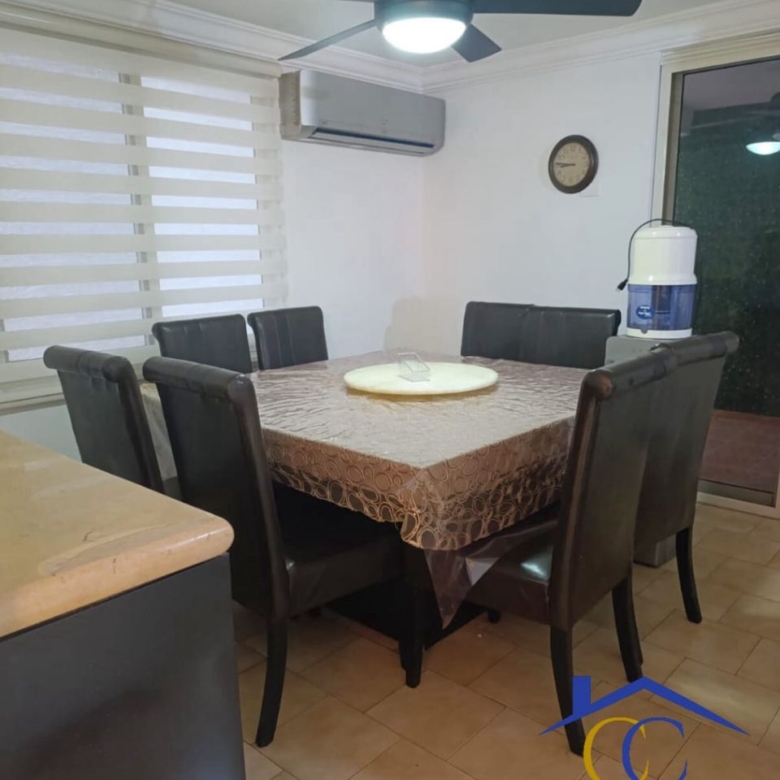 🔹Comedor con mesa para ocho personas, abanico de techo y minisplit